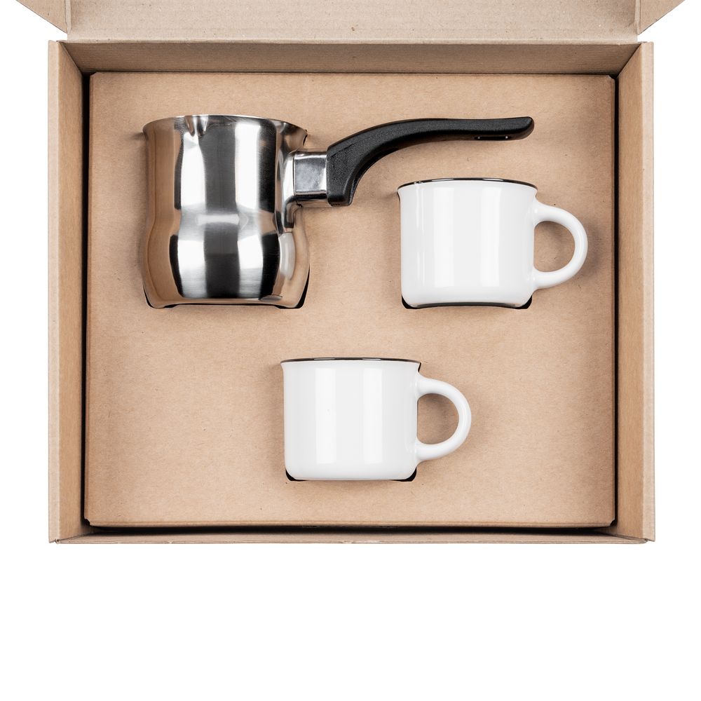 | Материал | кружка — фаянс; турка — нержавеющая сталь, пластик; коробка — микрогофрокартон, коробка, ложемент |