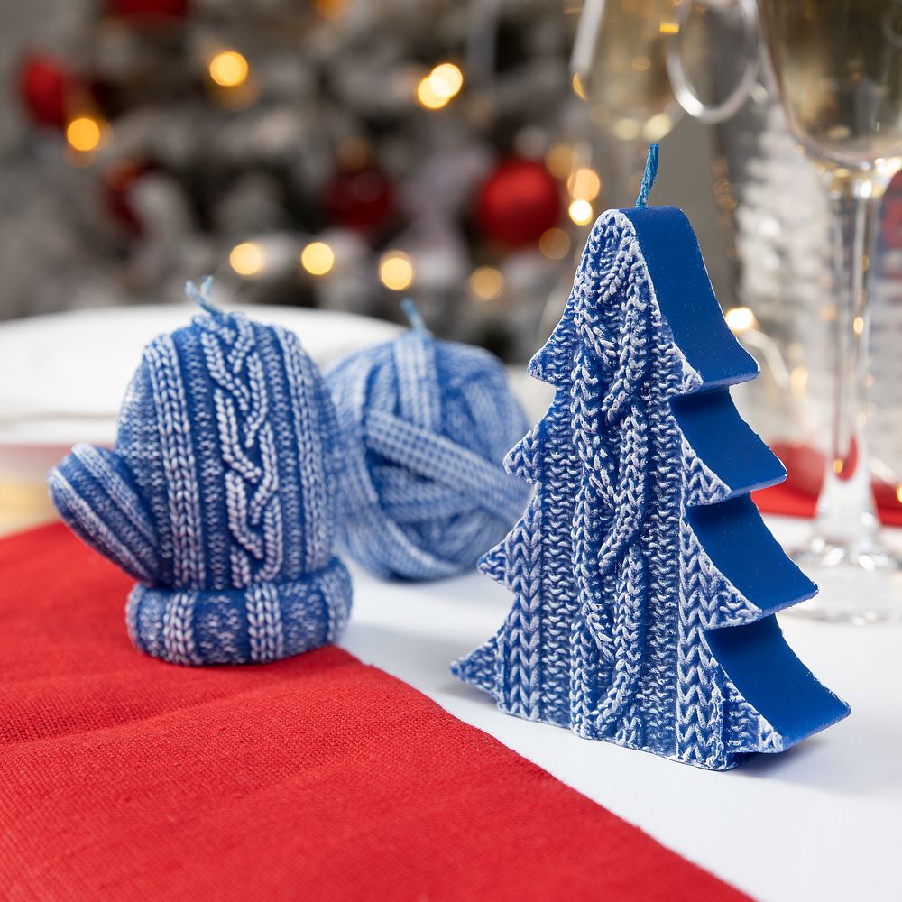Свеча Kniteam, елка, синяя