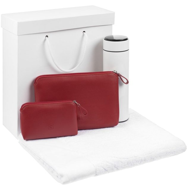| Материал | смарт-бутылка — металл, нержавеющая сталь; набор несессеров — искусственная кожа; полотенце — хлопок 100%, плотность 450 г/м²; коробка — переплетный картон |