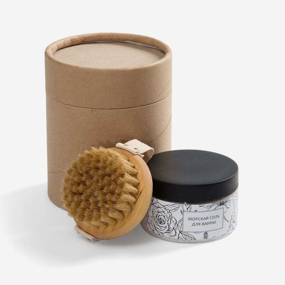 тубус: диаметр 12,2 см, высота 15 см; соль: диаметр 9 см, высота 5,7 см; щетка: диаметр 8 см