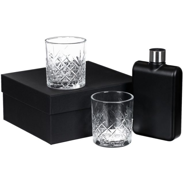 Стильная и практичная фляга вместе с элегантными стаканами станет прекрасным подарком для ценителей такого напитка, как виски. Благодаря матовой поверхности флягу особенно приятно держать в руке. Резной стакан удобной формы позволяет в полной мере насладиться вкусом, цветом и ароматом напитка. Емкость фляги 473 мл.