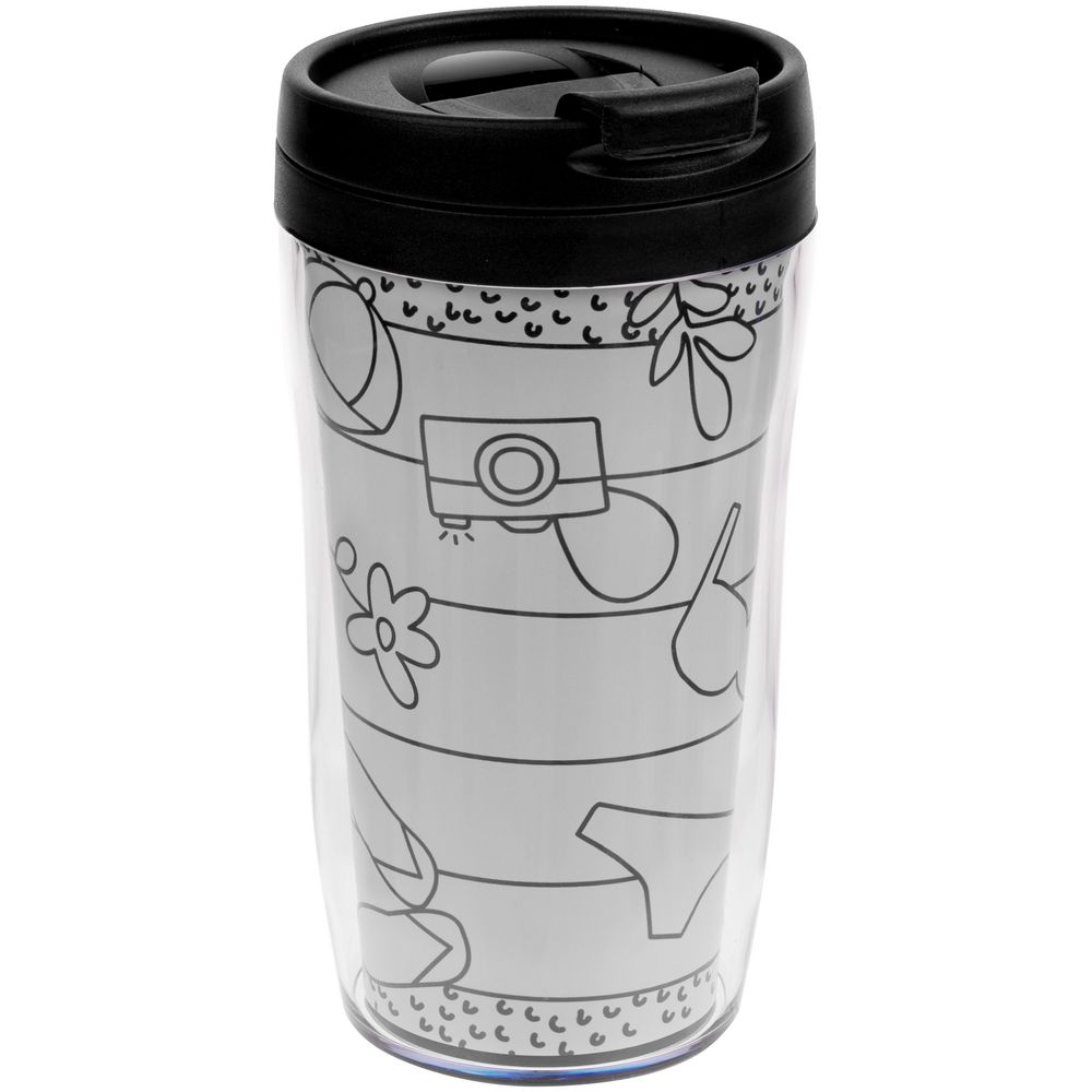термостакан — пластик; мелки — воск, картон; раскраски — бумага