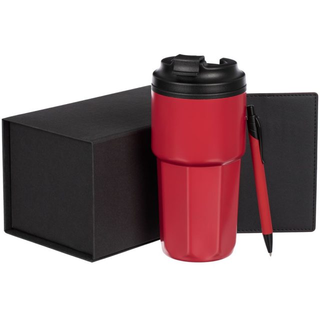 | Материал | термостакан — нержавеющая сталь, полипропилен; обложка для паспорта — искусственная кожа; ручка — металл, пластик; коробка — переплетный картон |