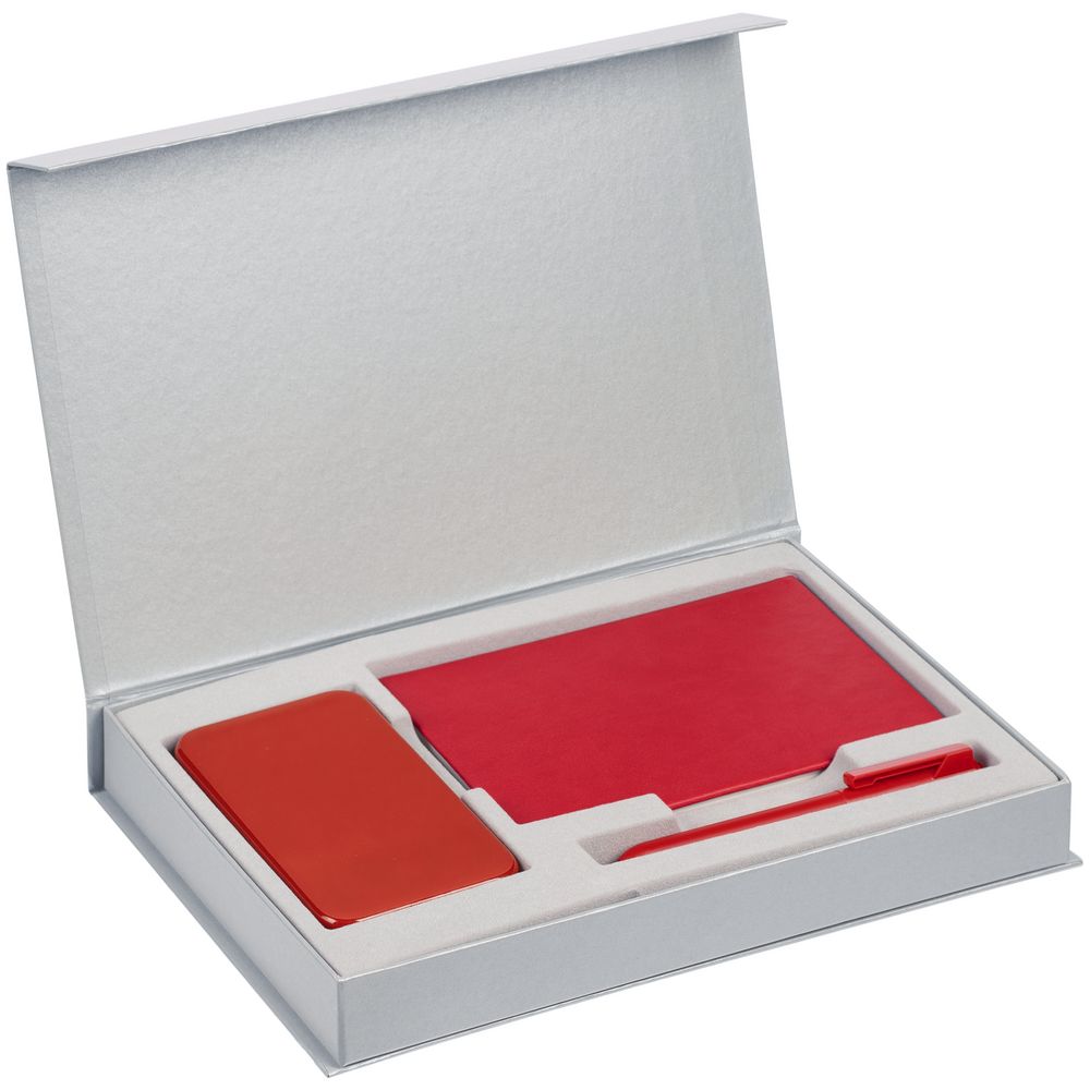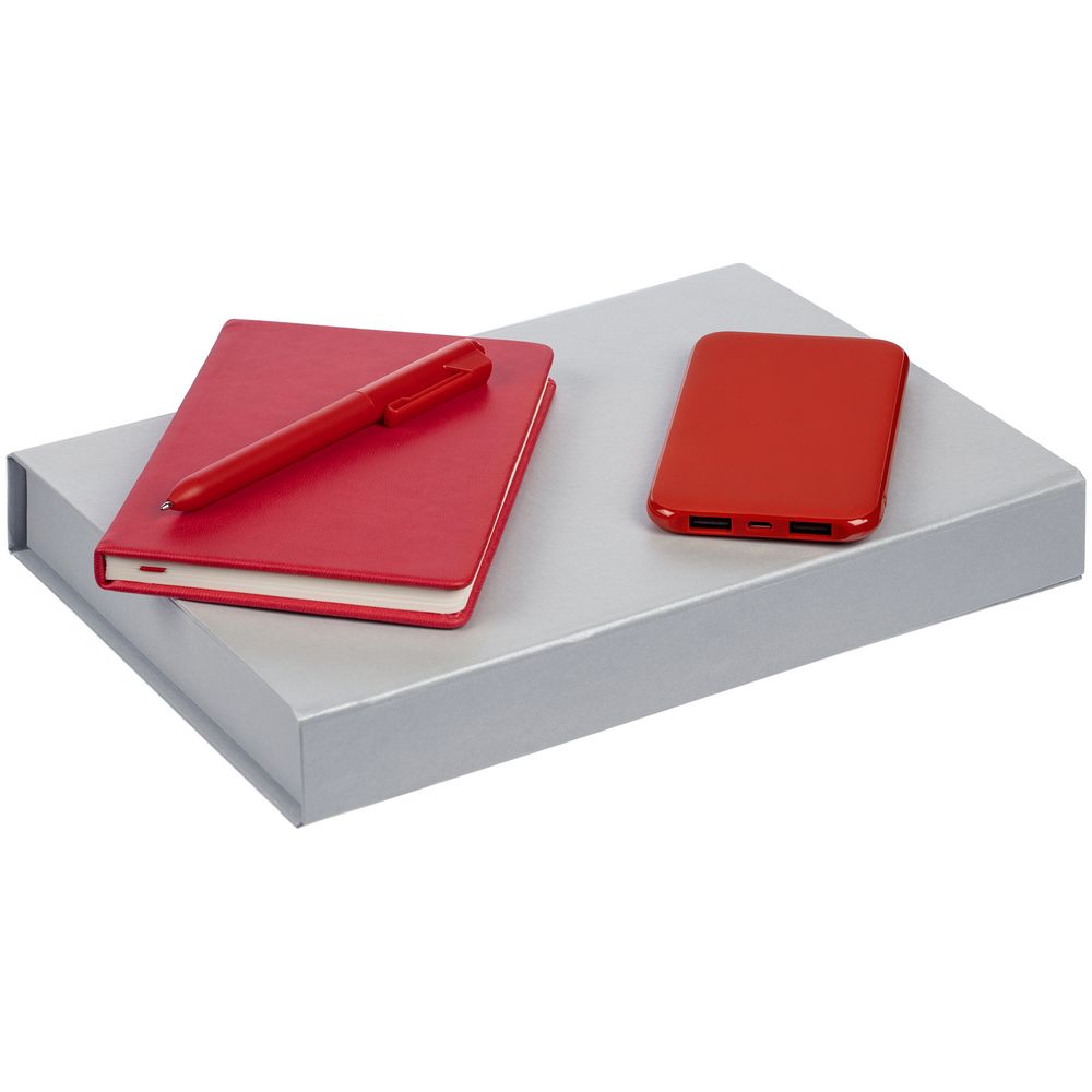 блокнот — искусственная кожа; аккумулятор — пластик; покрытие софт-тач; ручка — пластик; коробка — переплетный картон