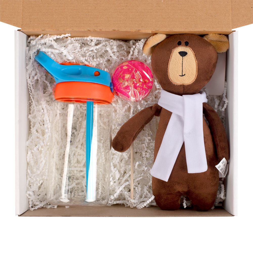 | Материал | бутылка — пластик, полипропилен; игрушка — велюр, набивка, шарфик — полиэстер 100%; коробка — микрогофрокартон, плотность 385 г/м² |