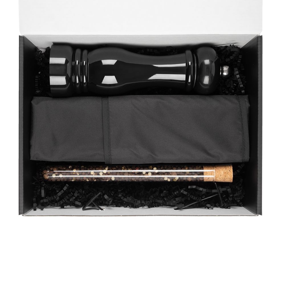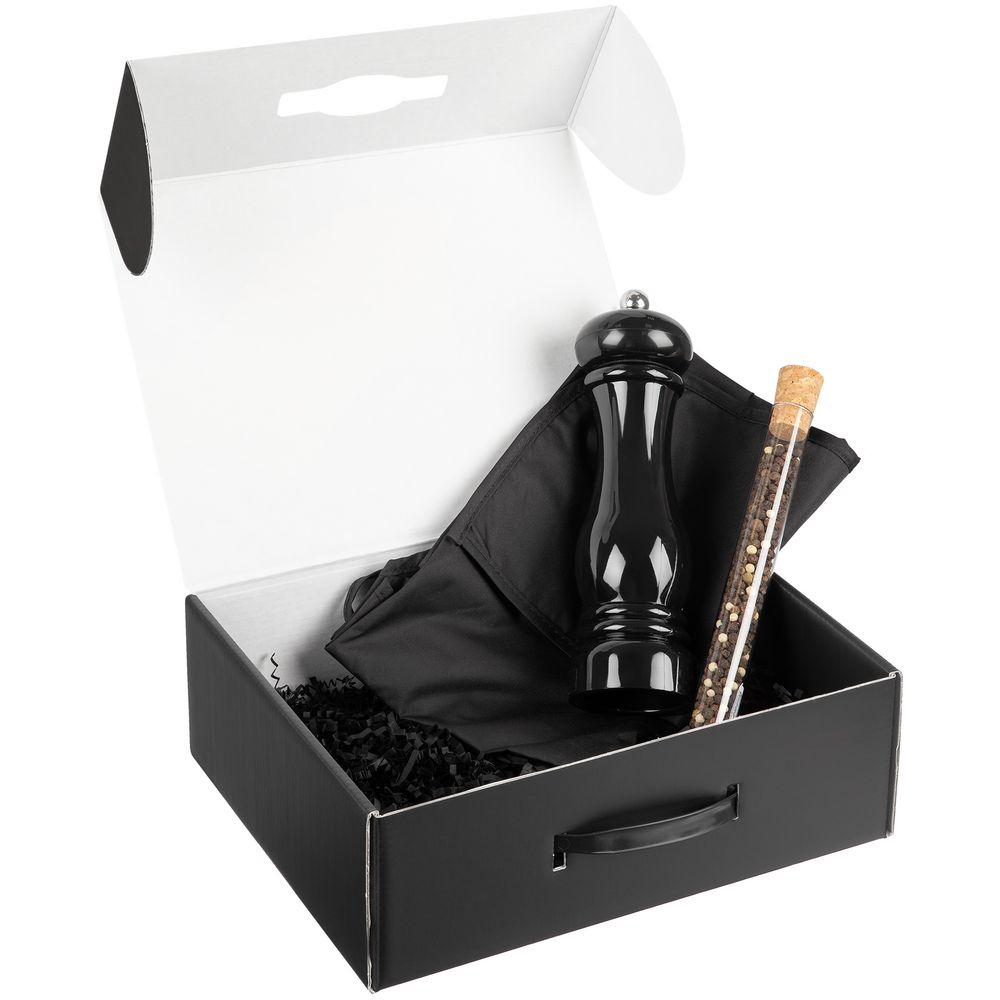 | Материал | мельница — пластик, АБС; фартук — полиэстер; специи — стекло; коробка — картон |