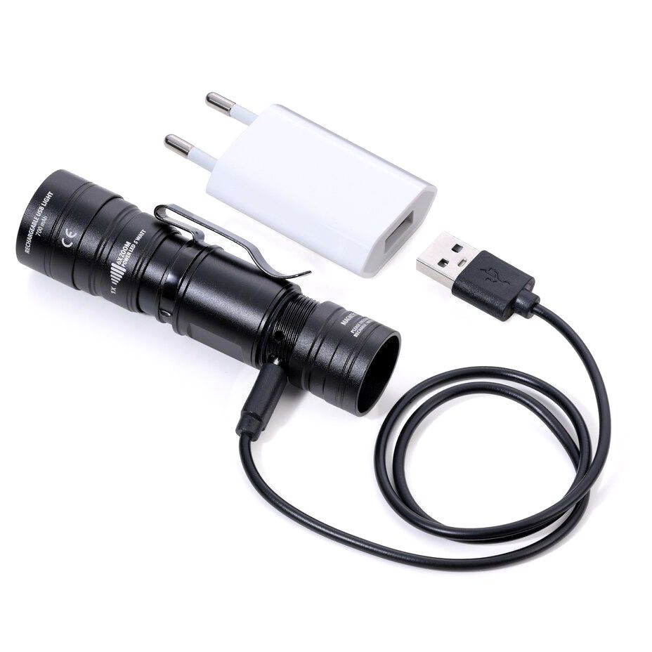 - В комплекте: фонарик, USB-кабель для зарядки, инструкция, фирменная упаковка