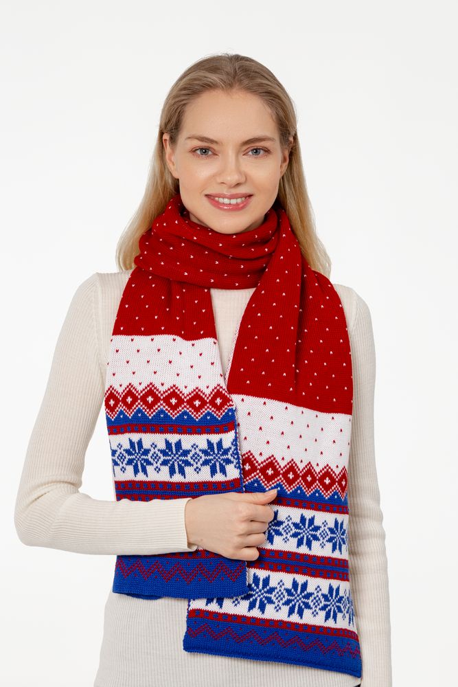 Шарф Happy View — это настроение волшебных рождественских фильмов, переданное через традиционный орнамент и классическое сочетание цветов.Шарф из полушерстяной пряжи с двусторонним жаккардовым узором.