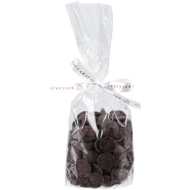 Темный бельгийский шоколад идеален для приготовления густых горячих напитков и насыщенных шоколадных десертов. Но маленькими аккуратными дропсами приятно похрустеть и просто так: изысканное лакомство с оттенком красных фруктов прекрасно дополнит чашку чая или кофе.Горячий шоколад фирмы Baccarat в форме дропсов (55 % какао) в индивидуальном пакете.