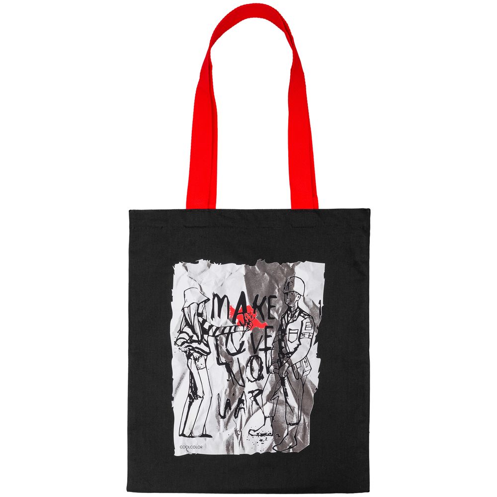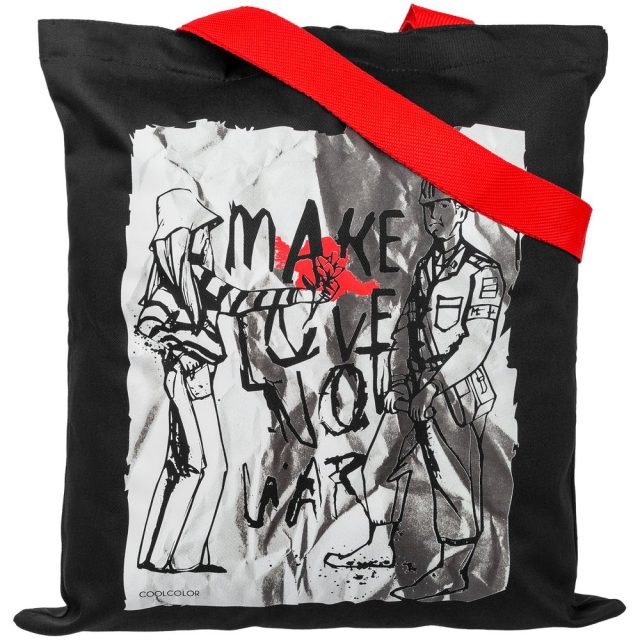 Шоппер для воинствующих пацифистов и тех, кто верит, что в любой битве побеждает любовь. Всегда!Выдерживает нагрузку до 10 кг.