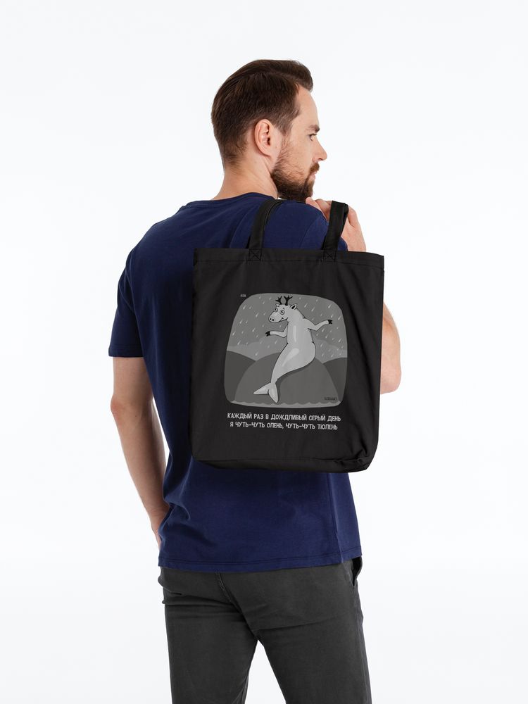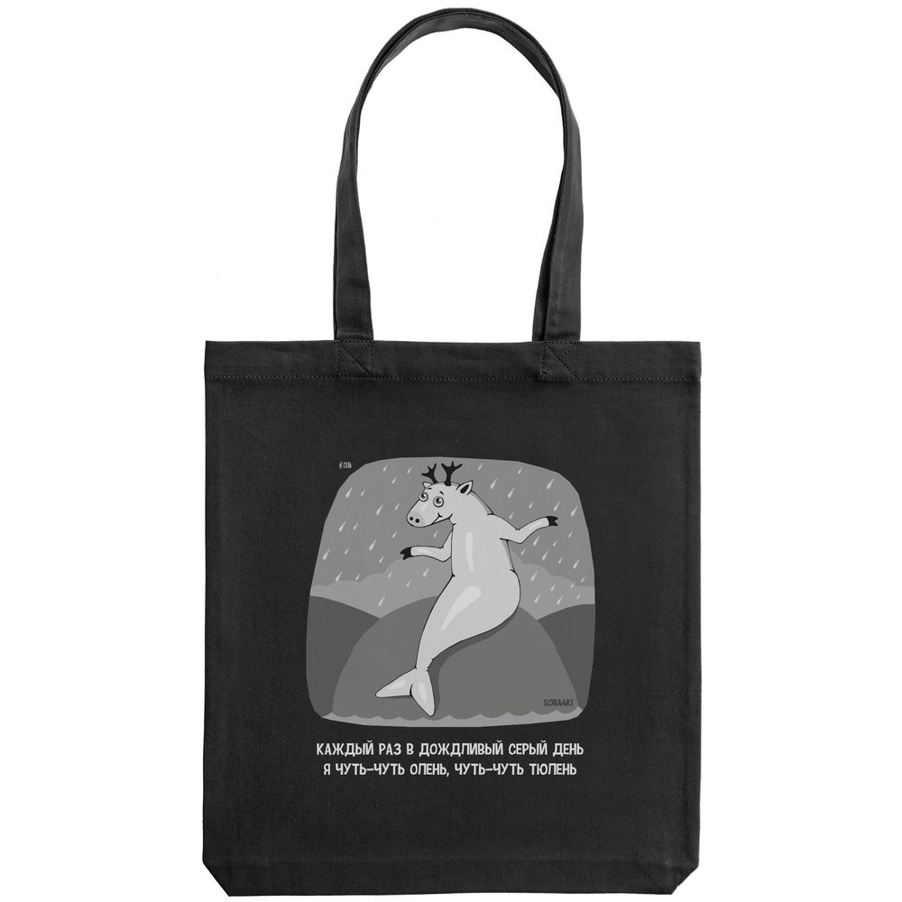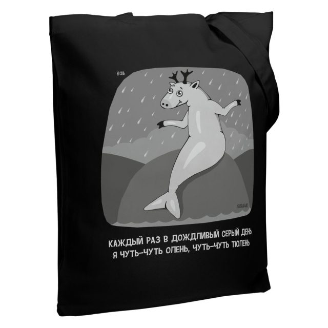 В разное время года (а особенно осенью) в разных городах России (а особенно в Санкт-Петербурге) появляются странные гибридные существа… Правда, место обитания оленей-тюленей чаще всего ограничивается их уютными домами с теплыми кроватями, и пока, увы, контакт загадочных персонажей с людьми не зафиксирован. Дизайн принта: Яков Коган.Выдерживает нагрузку до 10 кг.
