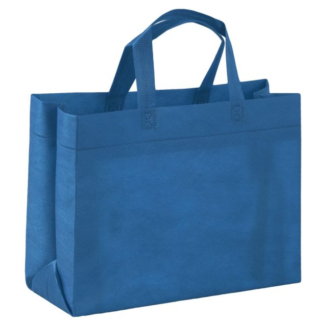 Небольшая сумка из спанбонда выдерживает нагрузку до 12 кг. Благодаря своей форме и размеру отлично подходит для упаковки подарков или полиграфических материалов.