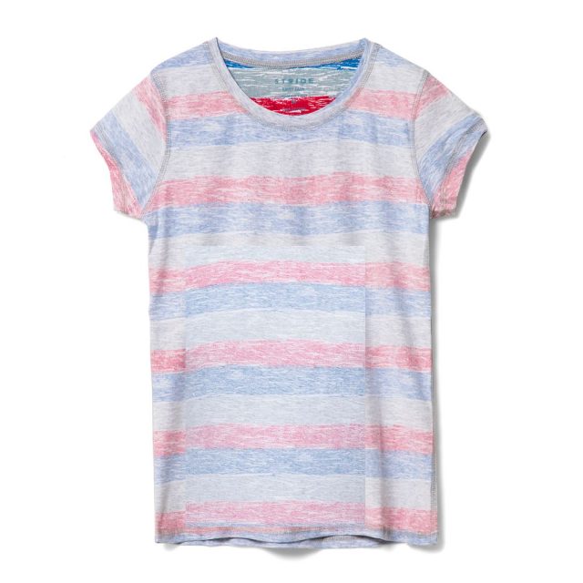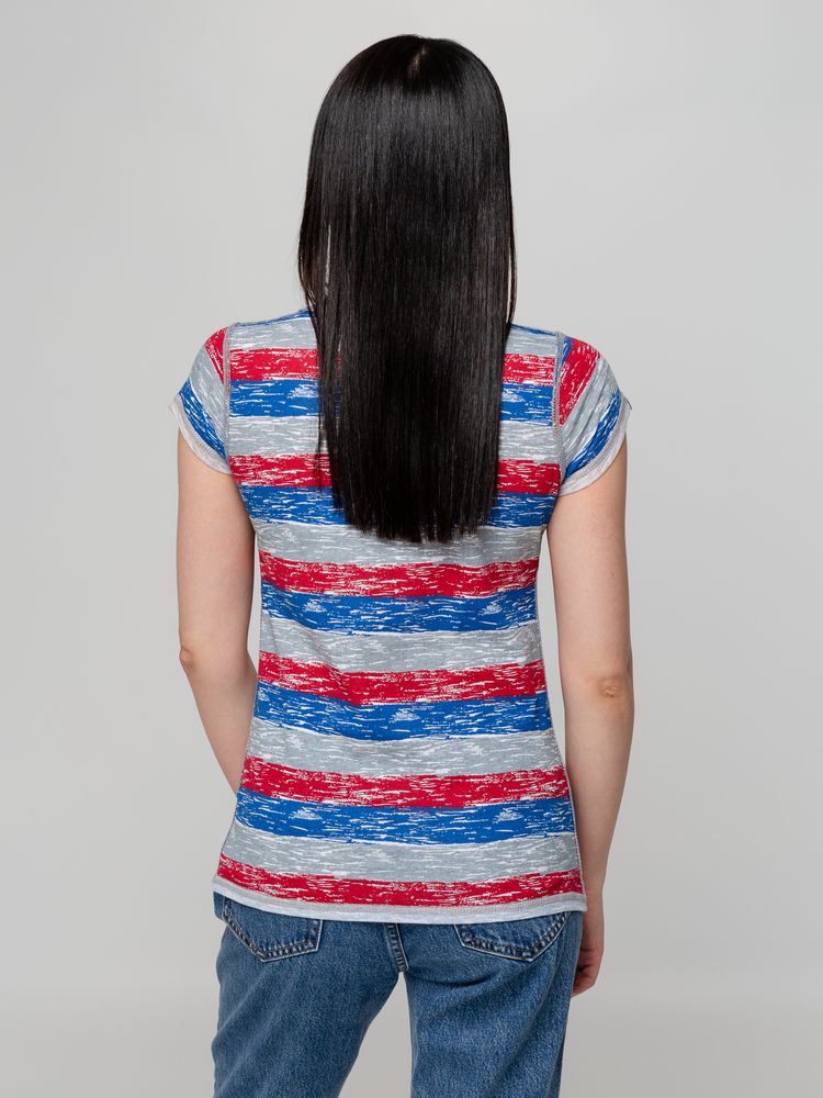 Двусторонняя женская футболка с круглым вырезом и плоскими швами.