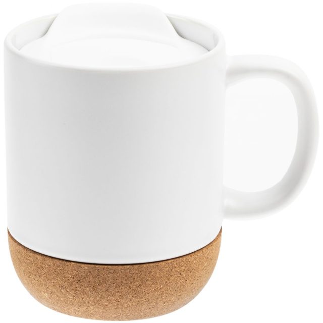 Кружка с пробковой подставкой Corky Walk для сублимационной печати, матовая, белая