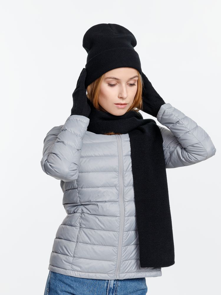 Двухслойная шапка из акриловой пряжи с регулируемым отворотом 7–10 см.