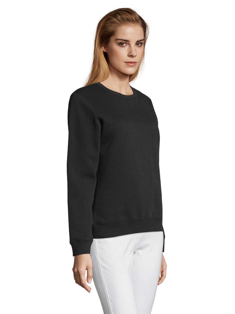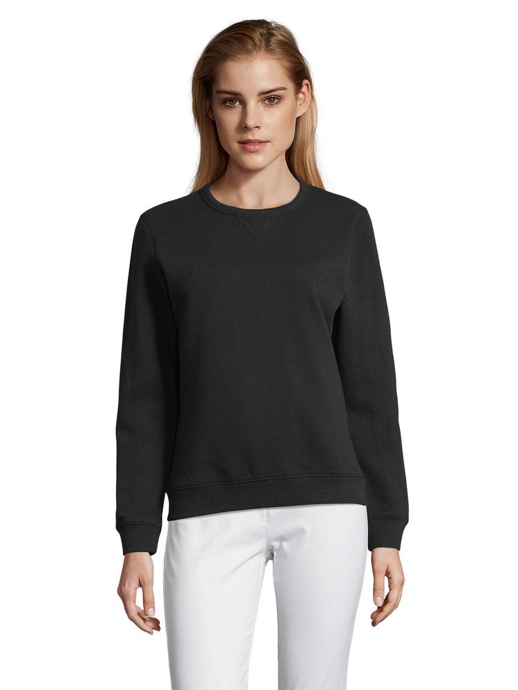 Женская утепленная толстовка с круглым вырезом и декоративной треугольной вставкой. Лейбл производителя в боковом шве изнутри, в шве горловины — только бирка с размером, что позволяет вам нанести свой логотип.
