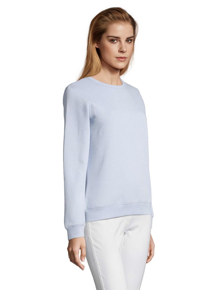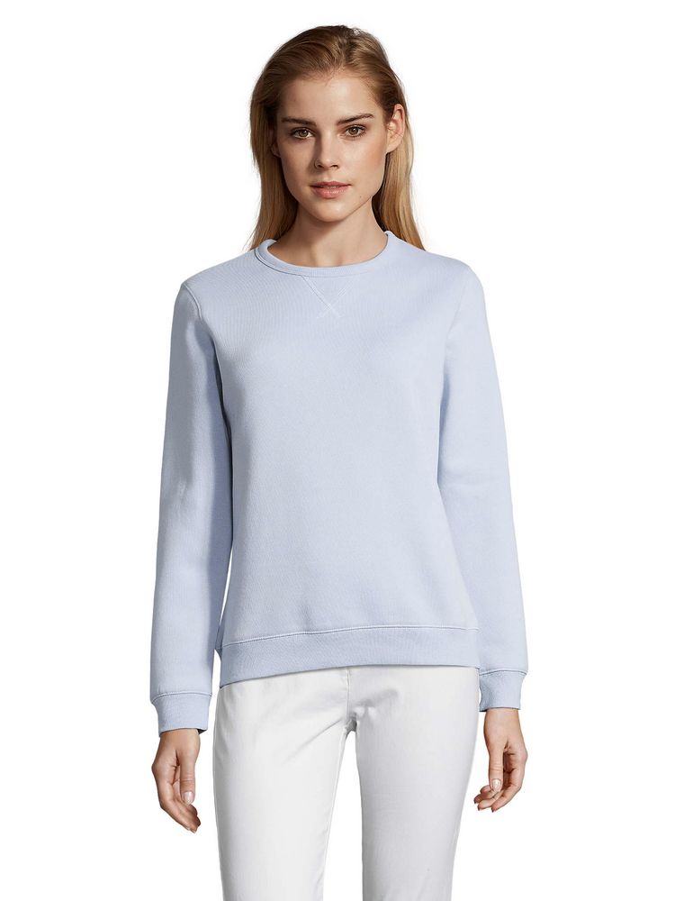 Женская утепленная толстовка с круглым вырезом и декоративной треугольной вставкой. Лейбл производителя в боковом шве изнутри, в шве горловины — только бирка с размером, что позволяет вам нанести свой логотип.