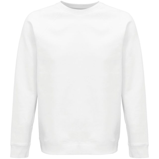 Свитшот унисекс из органического хлопка. Лейбл производителя в боковом шве изнутри, в шве горловины — только бирка с размером, что позволяет удобно нанести свой логотип.
