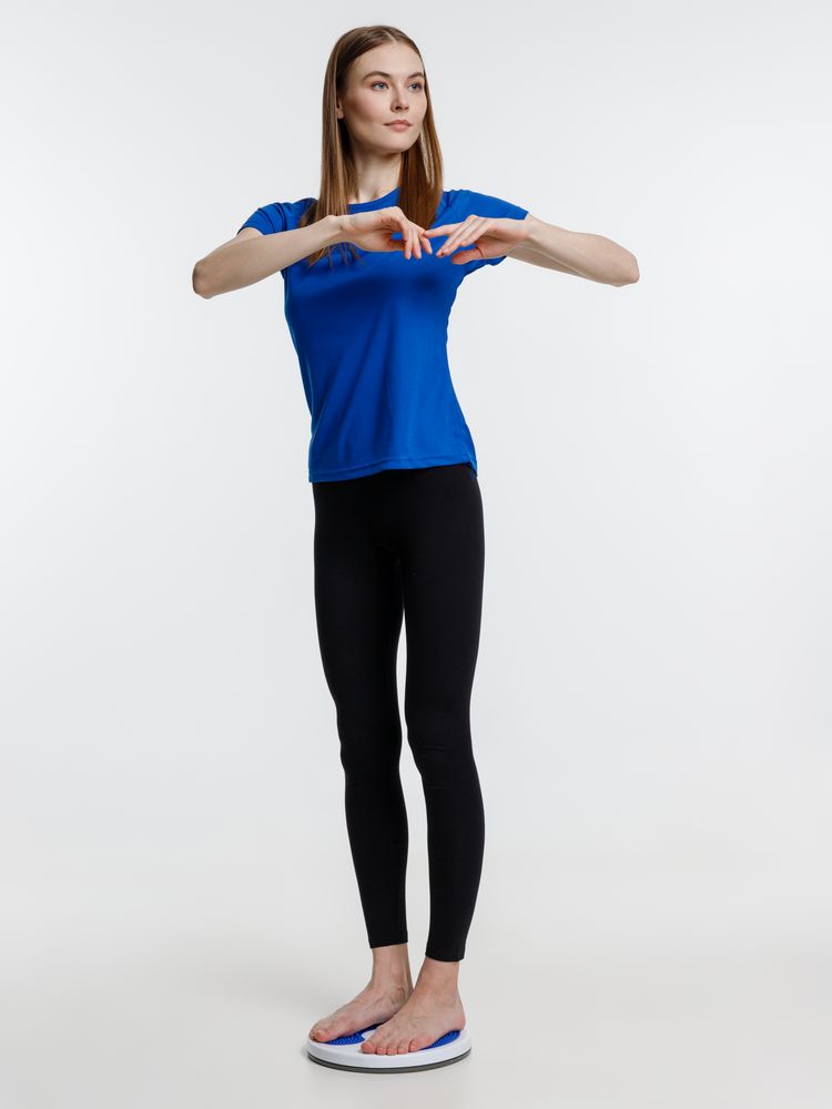 Работа с диском способствует улучшению гибкости, пластики, подвижности позвоночника, прокачивает мышцы пресса, ног и ягодиц, улучшает работу вестибулярного аппарата. Его можно использовать для разминки перед тренировкой или самостоятельно. Просто встаньте на диск здоровья босыми ногами и вращайтесь вокруг своей оси.