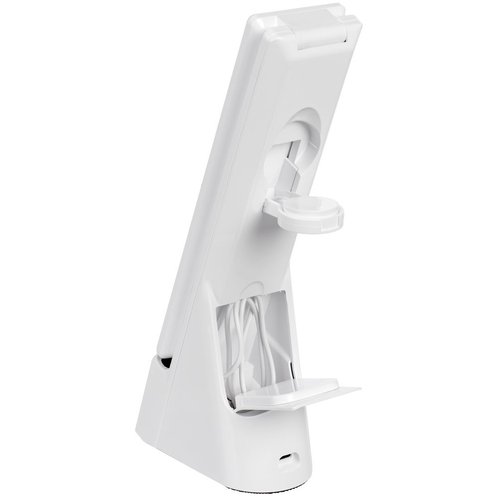 Powerack — многофункциональное устройство, которое сочетает в себе функции настольной лампы, электронных часов с будильником, станции беспроводной и проводной зарядки устройств.