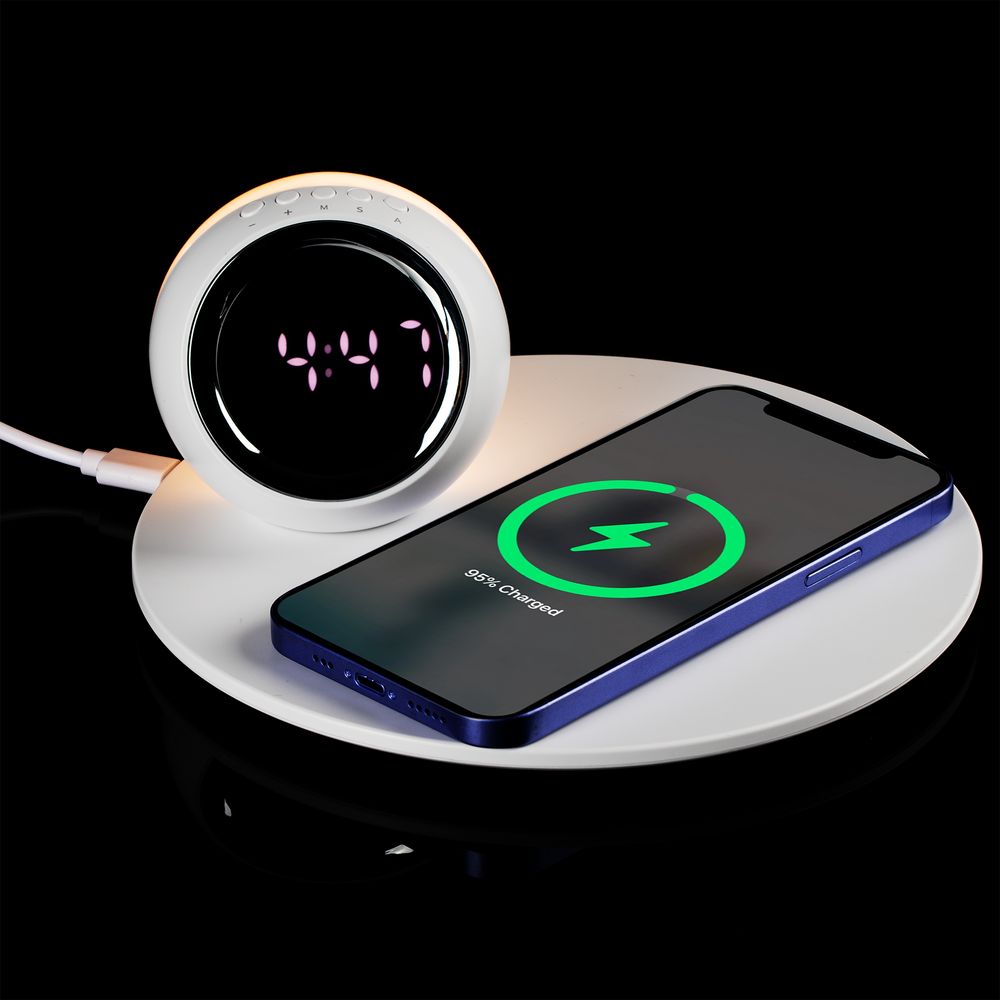 GlobeBee — технологичное многофункциональное устройство, которое сочетает в себе станцию беспроводной зарядки, электронные часы с будильником и ночную лампу.