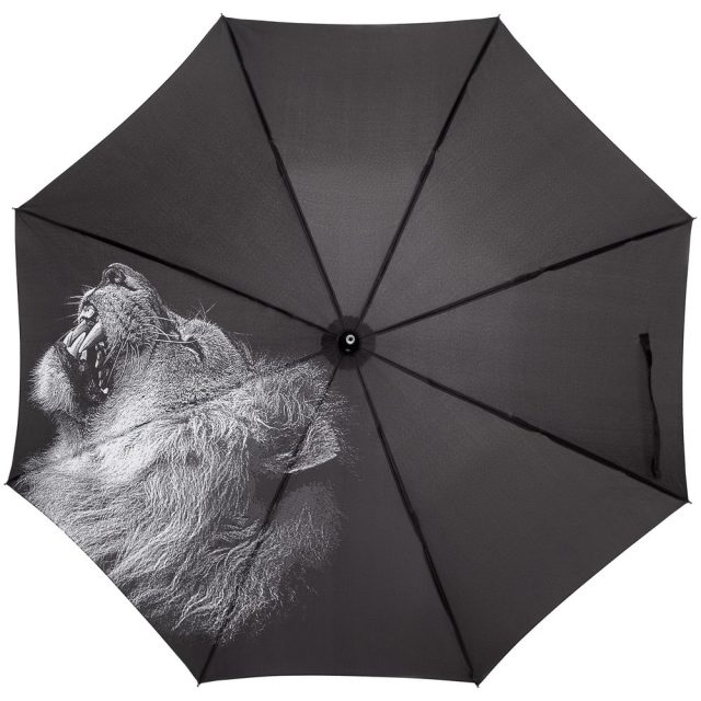 Царь всех зверей эффектно представлен в виде контрастного рисунка с проработкой самых мелких деталей. В такой компании новые подвиги не заставят себя ждать, ведь лев — символ силы, бесстрашия и мудрости.Зонт-полуавтомат. Поставляется в полиэтиленовом пакете.
