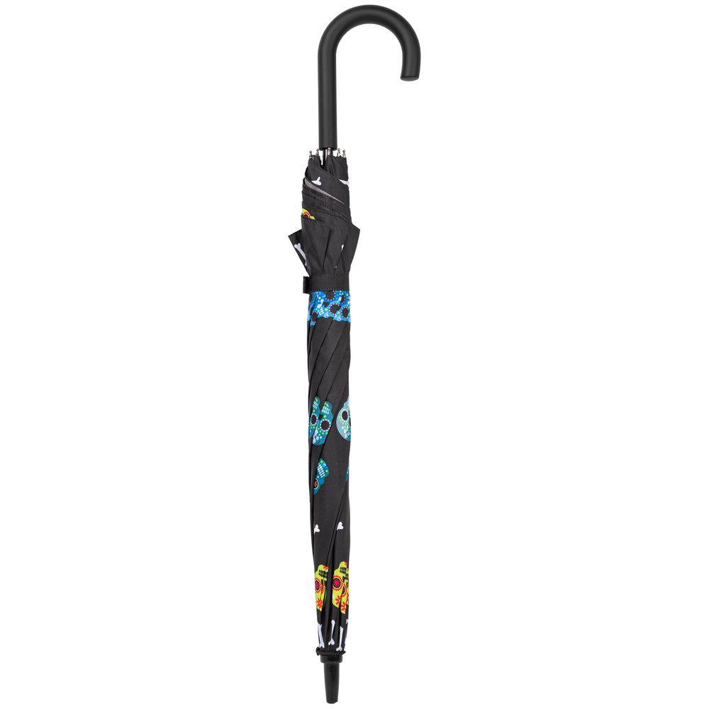 Зонт-трость с веселыми черепами-калаверами — символом мексиканского Дня мертвых — наполнит ваши прогулки под пасмурным небом атмосферой ярчайшего латиноамериканского фестиваля. Дождю не испортить ваш внутренний праздник!Зонт-полуавтомат, 8 спиц.