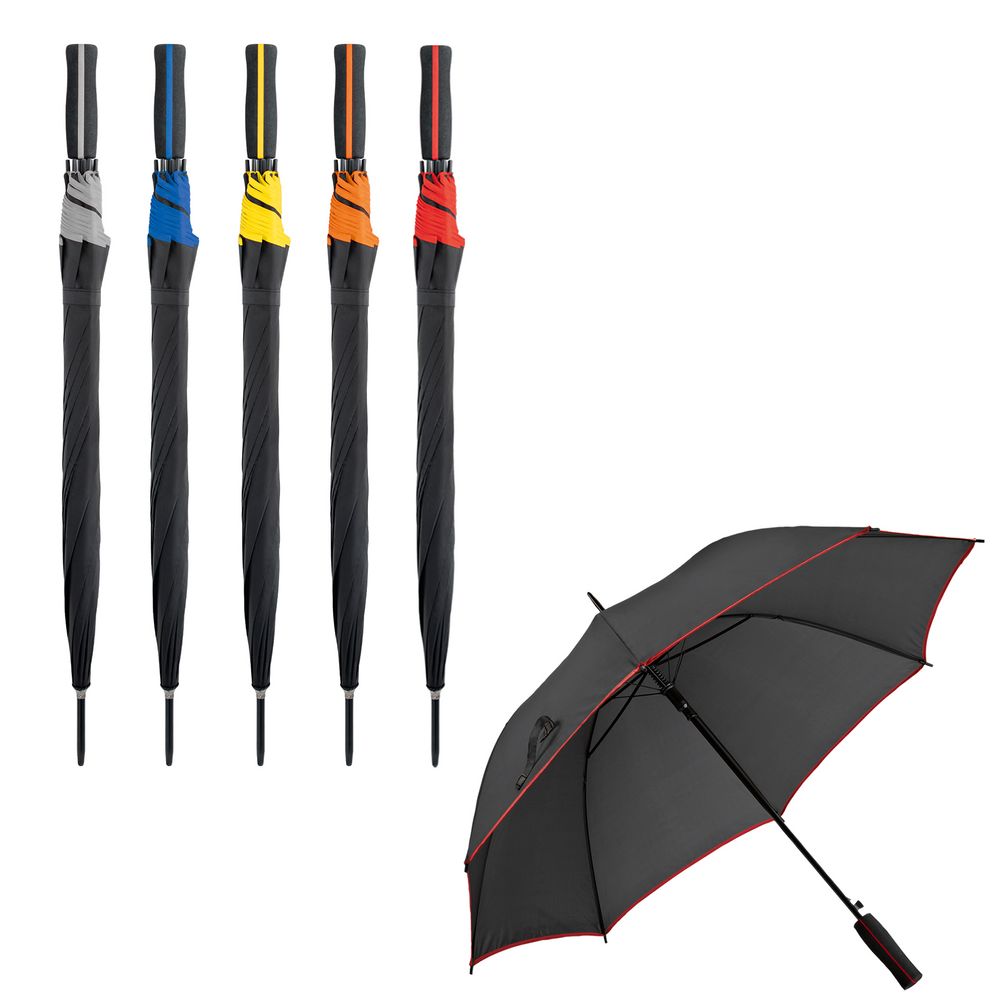 Зонт-трость с мягкой ручкой и цветными деталями на куполе и ручке.Зонт-полуавтомат, 8 спиц.