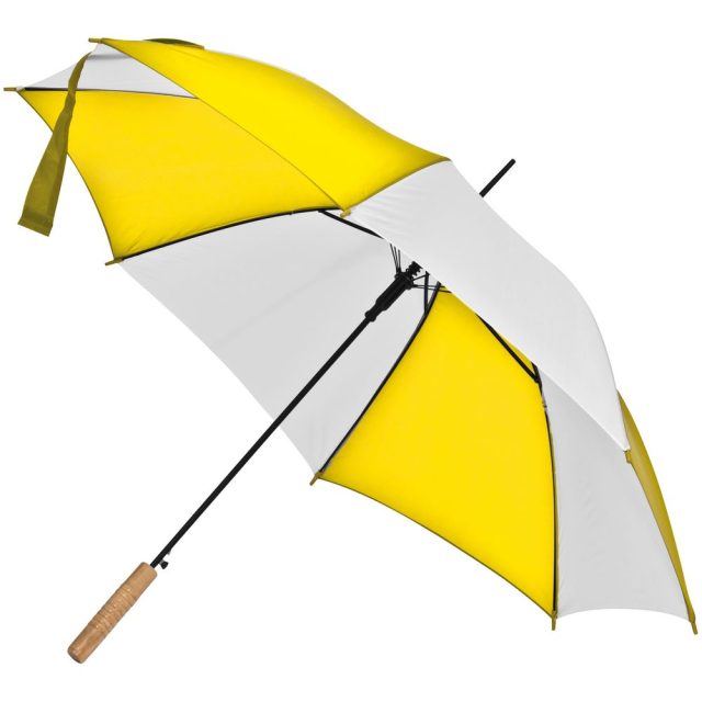 Двухцветный купол зонта Milkshake напомнит о пляже и музыкальном фургончике с мороженым, поможет с улыбкой переждать самый сильный ливень или укрыться от палящего солнца.